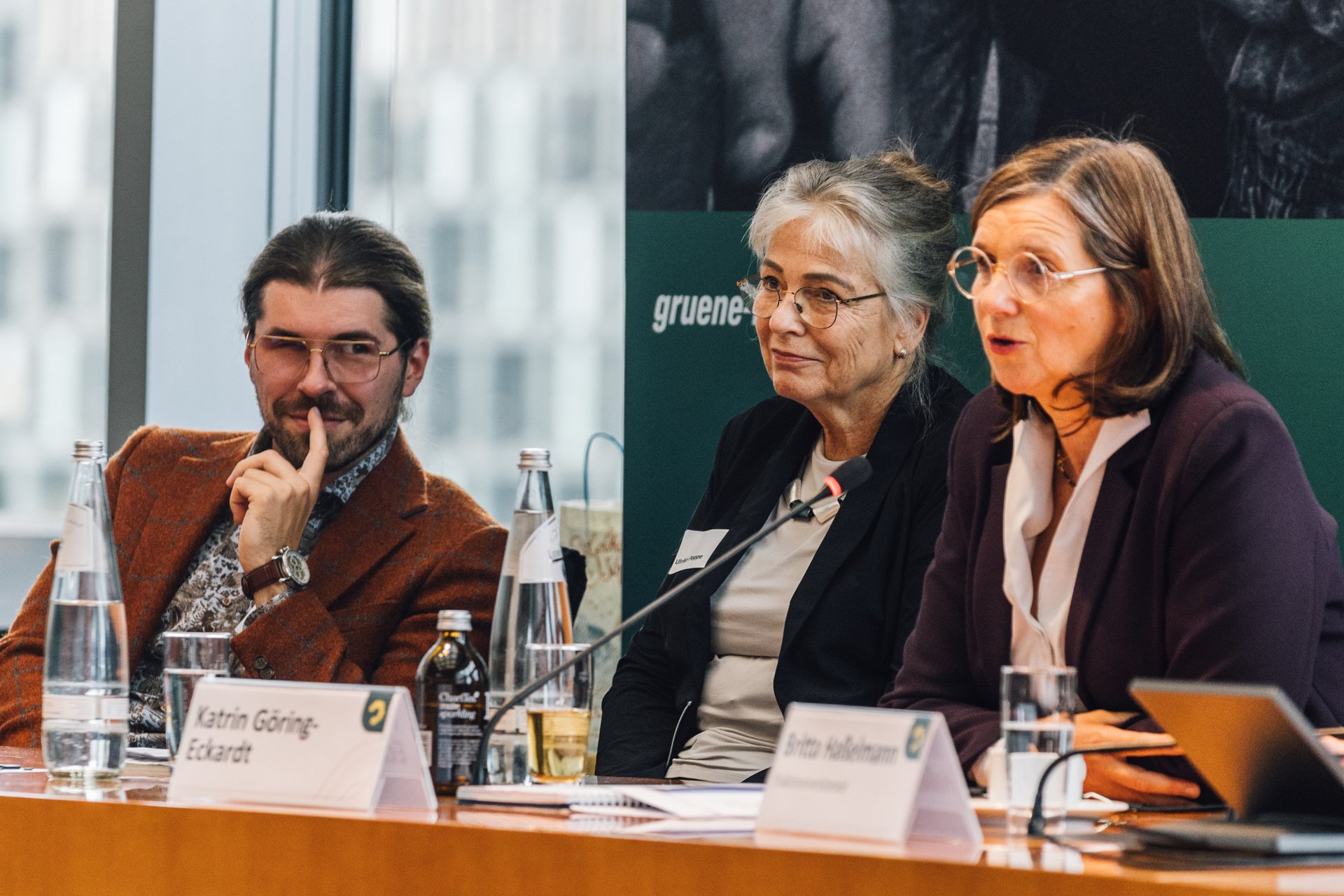 Auf dem Podium diskutierten die Historikerin Prof. Hedwig Richter, die Bürgerrechtlerin Ulrike Poppe und der Journalist Alexander Prinz (“Der Dunkle Parabelritter”), moderiert von Katrin Göring-Eckardt MdB. Anfangs wurde die Relevanz des Themas angesichts anhaltender Ost-West-Differenzen und gesellschaftlicher Transformationsprozesse betont. Britta Haßelmann MdB betonte in ihrer Begrüßung: