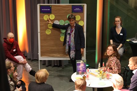Bei Dialogrunden an Stehtischen, den Ansprechbars, luden grüne Abgeordnete die Gäste zum Austausch zu aktuellen digitalpolitischen Fragestellungen ein.