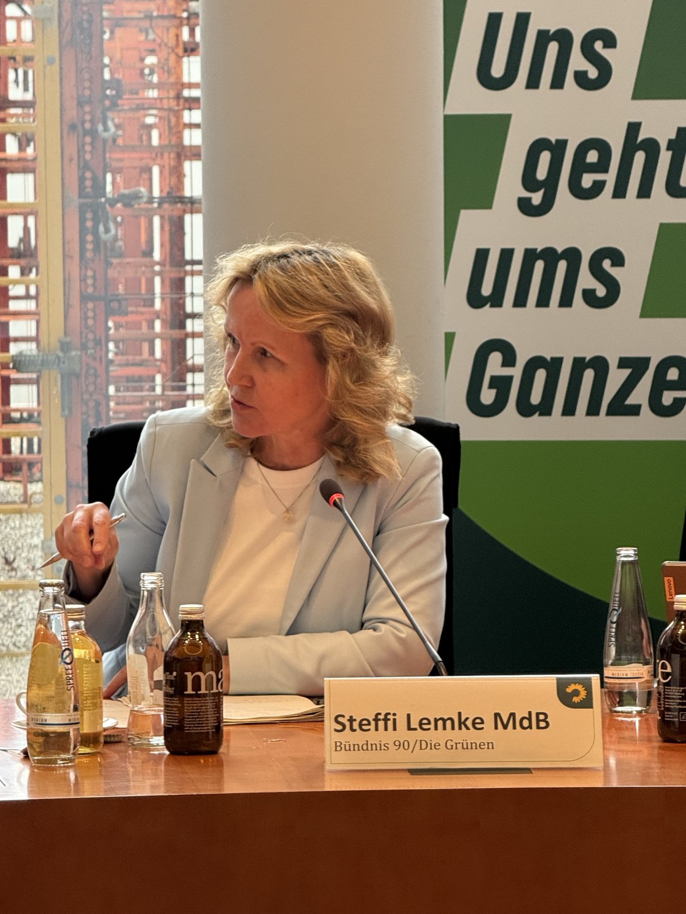 Steffi Lemke MdB, die für Wasserpolitik zuständige Berichterstatterin betonte, dass der Schutz der Ressource Wasser oberste Priorität habe. Gleichzeitig stehe das Süßwasserökosystem bereits heute unter erheblichem ökologischem Druck. Vor diesem Hintergrund gehe es darum, eine effiziente und zugleich kostengünstige Reinigung des Wassers sicherzustellen – auch mit Blick auf zukünftige Generationen. Der vorsorgende Gewässerschutz müsse dabei im Fokus bleiben.