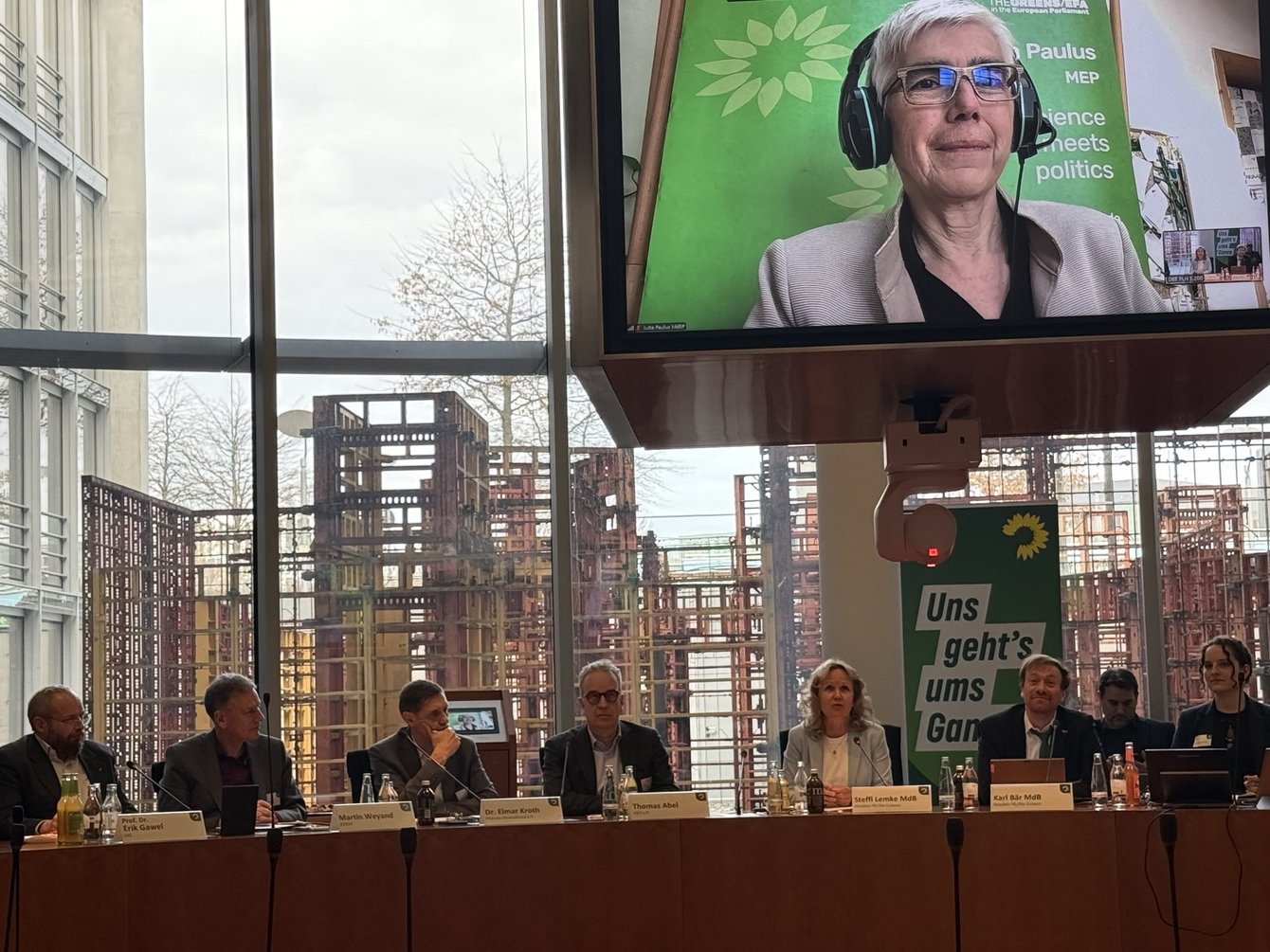 Jutta Paulus, Abgeordnete des Europäischen Parlaments für die Grünen/EFA, hob hervor, dass die Verabschiedung der Richtlinie mit einer breiten politischen Mehrheit der demokratischen Fraktionen sowie zahlreicher Mitgliedstaaten gelungen sei. Vor diesem Hintergrund erscheine es überraschend, dass KARL dennoch infrage gestellt werde. Sie wies darauf hin, dass die Richtlinie alle in Europa in Verkehr gebrachten Produkte erfasse, beispielsweise auch solche aus China, sodass kein einseitiger Wettbewerbsnachteil entstehe. Ferner sei die erweiterte Herstellerverantwortung ein bewährtes Konzept. Ein Beispiel dafür sei der seit Jahrzehnten etablierte „Grüne Punkt“.